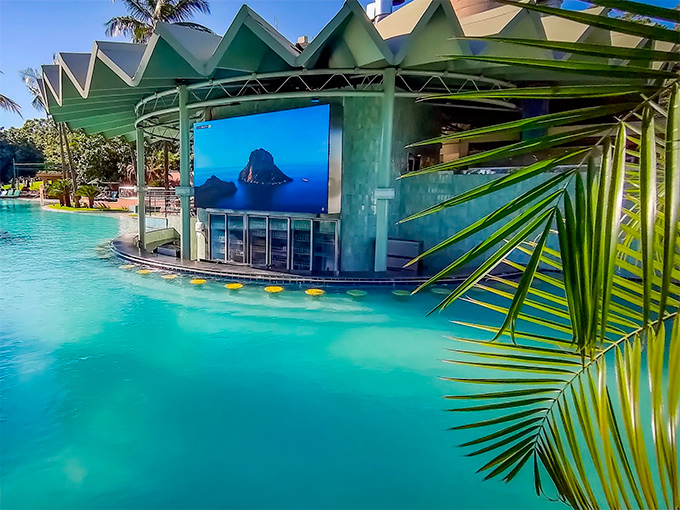 hóspede encontra cascatas, pontes, hidromassagem e bar. Os hóspedes também têm à disposição uma piscina de